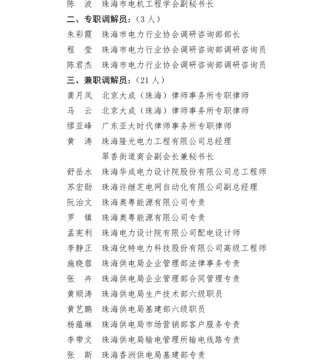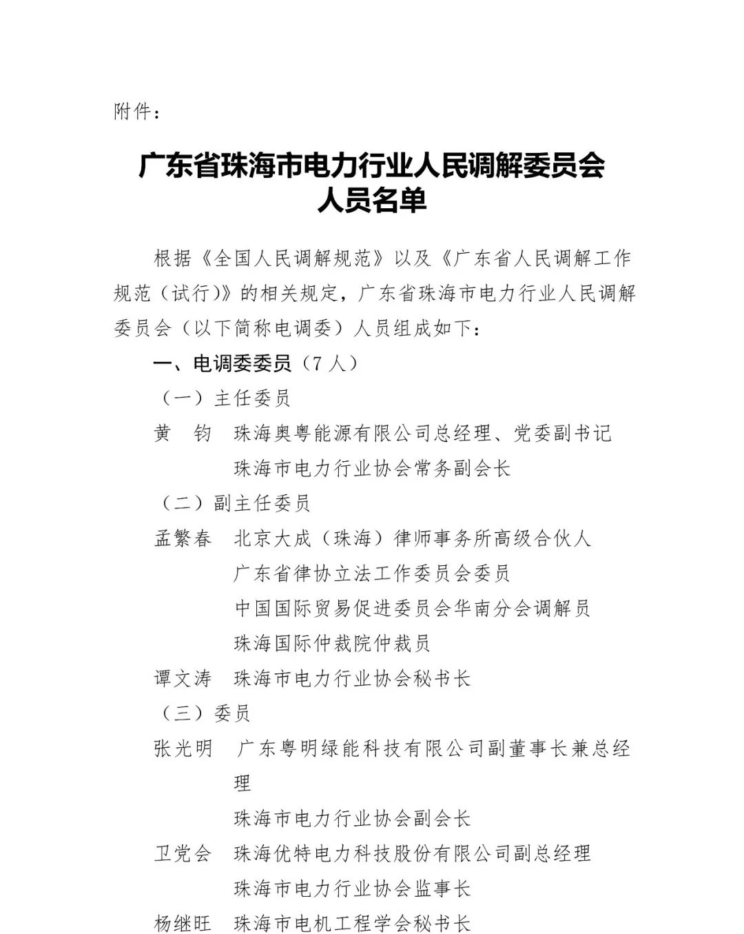 关于成立广东省珠海市电力行业人民调解委员会的通知