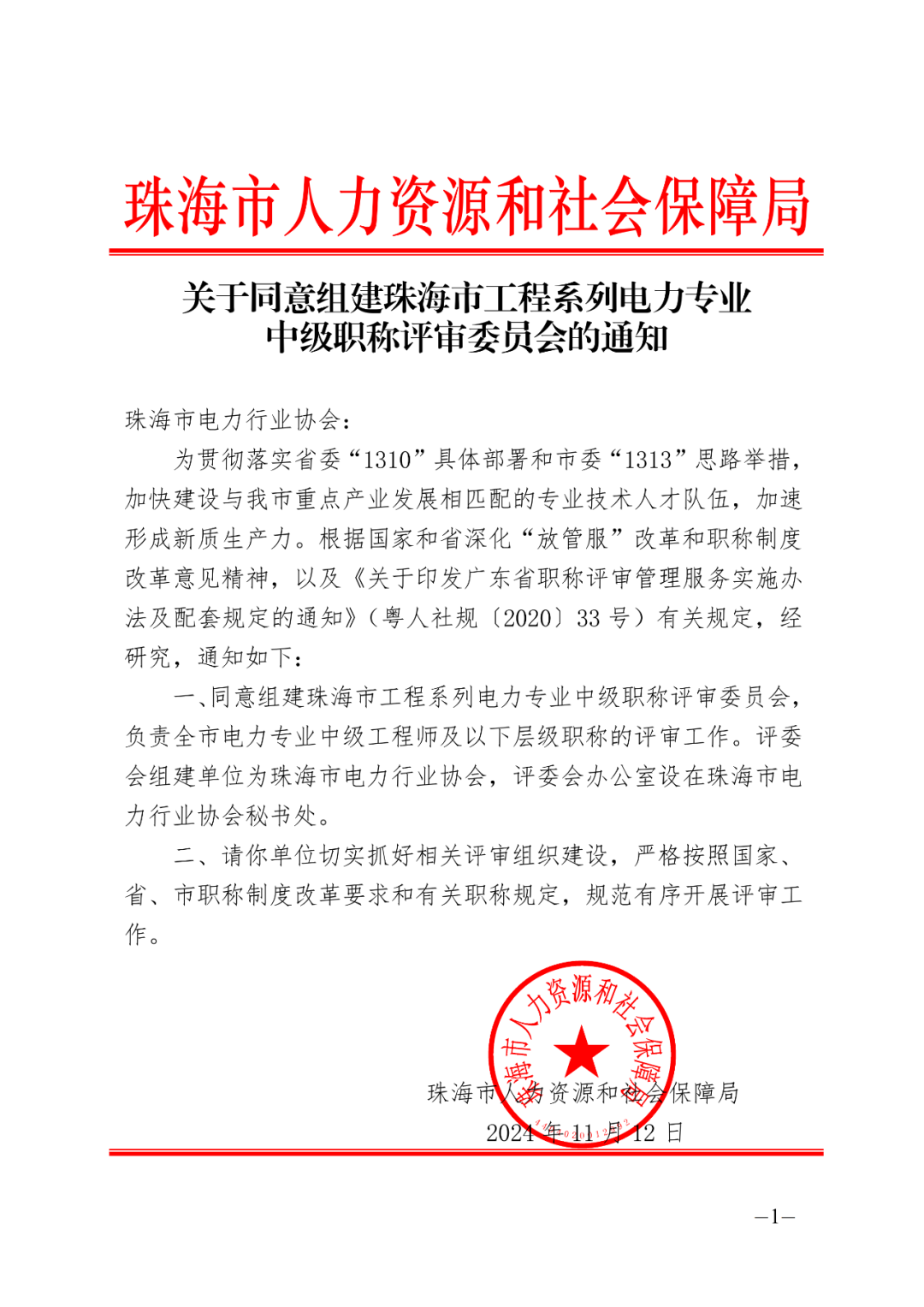 喜讯:珠海市电力行业协会获批组建珠海市工程系列电力专业中级职称评审委员会